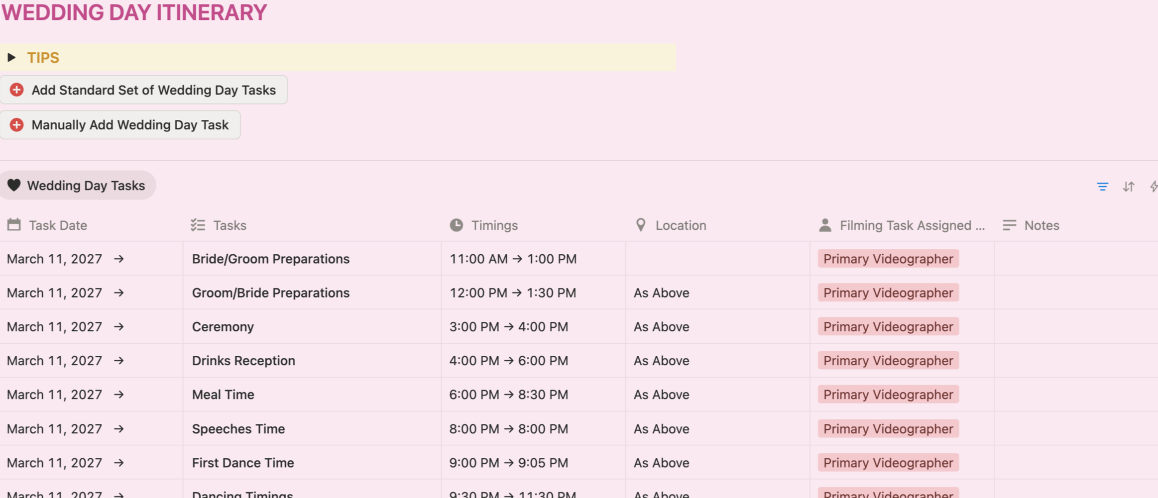 After over 15 years working as a full time wedding filmmaker and managing teams of videographers, photographers and drone operators on large multi-day events, I feel I have a pretty good idea of what it takes to stay organised, efficient and on schedule for my clients - and what has helped me do this is having a system in place to keep everything in order.