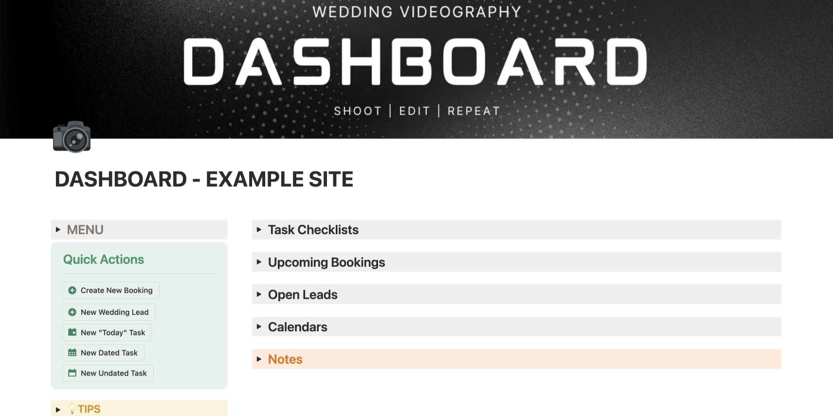 Introducing my Wedding Filmmaker OS, a system I created with wedding videographers in mind- somewhere to store bookings, leads, financial information, important contacts, footage storage locations, write blog posts and more.